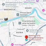Başçarşı 10 dakikalık yürüme mesafesindedir. Asim Ferhatović Hase Stadyumu ise 15 dakikalık sürüş mesafesindedir. Huremusa'a çok yakın bulunan bu daire, Saraybosna şehrinin merkezinden 20 dakika yürüme mesafesinde yer almaktadır. Joe Cooker, Bubble Waffle Market yürüyerek 15 dakika mesafede bulunmaktadır. Bu Apartman Hadi dairesi, Saraybosna Belediye Binası'nın yakınındadır.